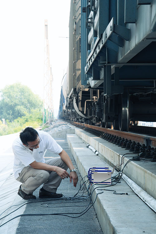 Bei der Entwicklung neuer Schienenfahrzeuge werden hunderte Sensoren entlang des Zuges installiert – zur Messung von Dehnungen, Temperaturen und Beschleunigungen. Die dezentralen imc CRONOSflex-Module digitalisieren die Signale direkt an der Quelle und übermitteln sie synchron an die zentrale Basiseinheit. So entstehen Echtzeitdaten über das Verhalten kompletter Funktionseinheiten.