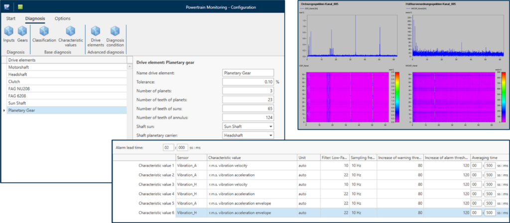 Mit dem Zusatzpaket „Powertrain Monitoring“ können Entwickler und Testingenieure Antriebsstränge überwachen. Ausgeklügelte Vibrationsanalysen ermöglichen es, sowohl Getriebe als auch Lager zu diagnostizieren. Basierend auf einem detaillierten kinematischen Modell des Systems lassen sich so frühzeitig Schäden an Lagern und Zahnrädern identifizieren und z.B. einzelne Kugellagerdefekte aufspüren.