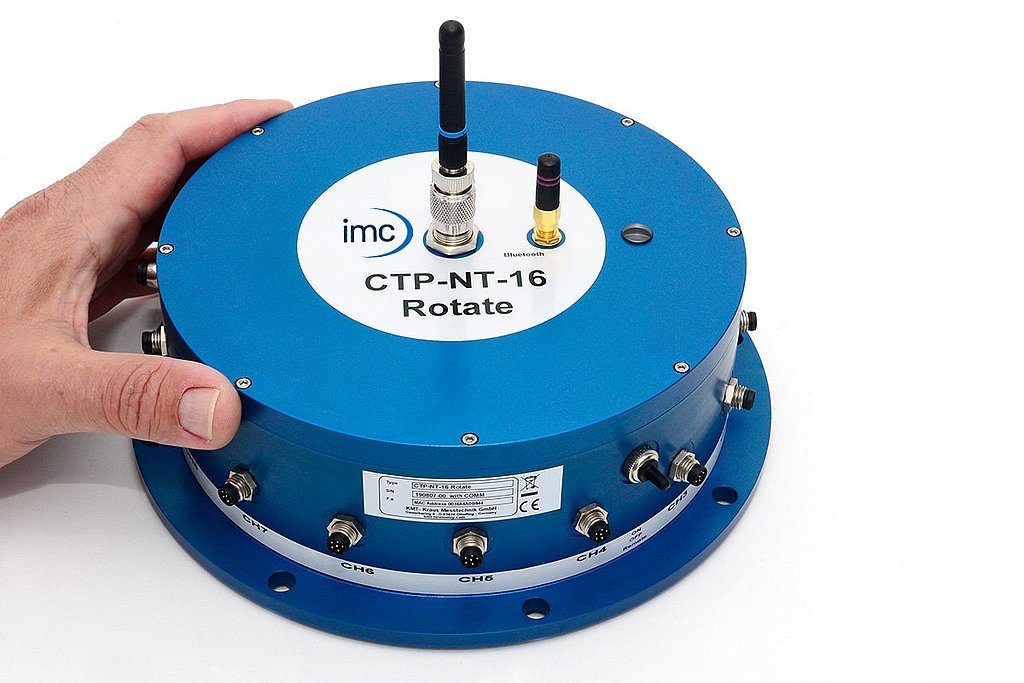 Das Telemetriesystem CTP-NT-Rotate ermöglicht die Erfassung, Aufbereitung und Übertragung von 8, 16, 32 oder 64 parallelen Messsignalen von rotierenden Maschinenteilen, Prüfständen, Rädern und Rotoren. Verschiedene Konfigurationen mit unterschiedlichen Sensormodulen sind verfügbar, inkl. Signalaufbereitung für DMS, Thermoelemente Typ K (TH-K), ICP-Sensoren, Potentiometer (POT), LVDT- / RVDT-Sensoren und auch Spannungseingänge. Gemischte Konfigurationen sind möglich (in 2-Kanal-Gruppen). Die integrierte Akkumulatoreinheit ermöglicht eine einfache und schnelle Installation der Telemetrie. Das wetterfeste, für die Freiluftanwendung (IP65) ausgelegte System, ermöglicht Datenübertragungen über Distanzen von bis zu 20 Metern im Freifeld.